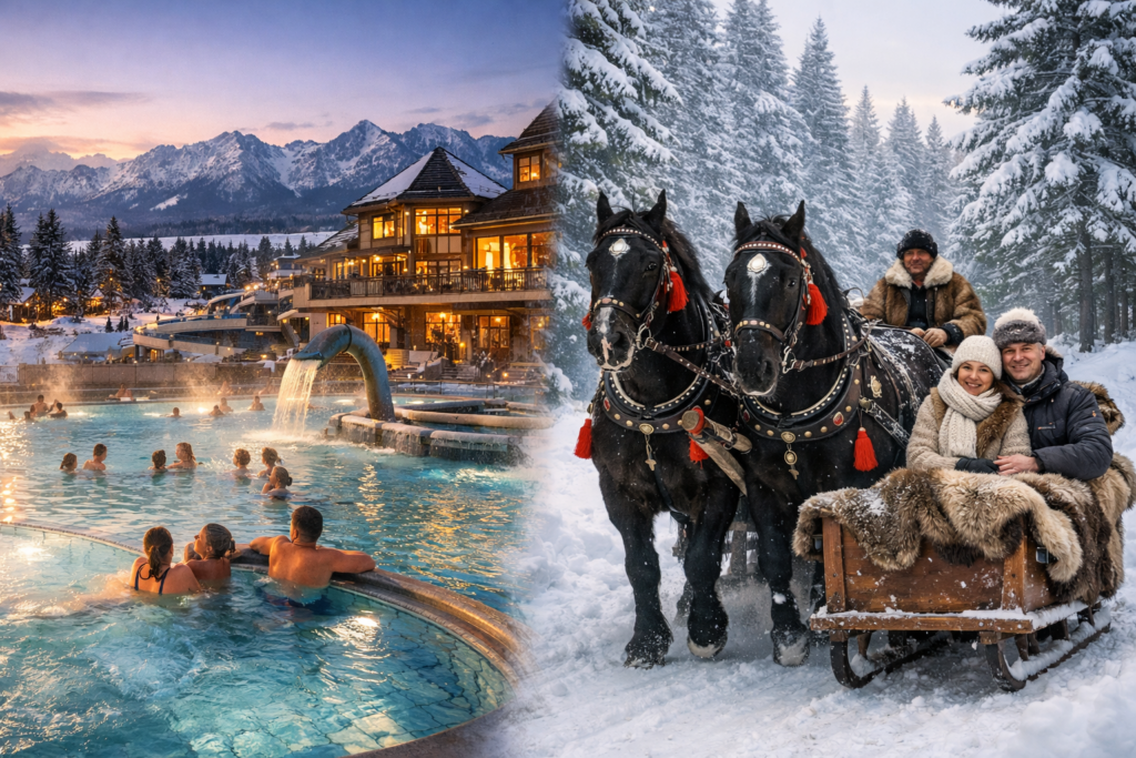 - relaks na Termach Bania, możliwość korzystania z basenów zewnętrznych z widokiem na Tatry i basenów wewnętrznych. Gorące wody geotermalne i strefy SPA pozwolą poczuć błogie odprężenie pośród zimowej scenerii.